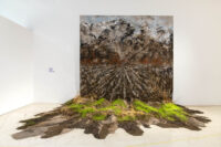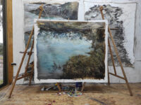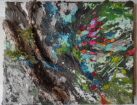 En obras como Mascar la Tierra, las pinturas se intervienen con troncos, bloques de cemento y tierra extraída del lugar, creando un diálogo entre materialidades y evocando la geografía que las inspira. En Tierra de Nadie, los límites y fronteras se expanden, cuestionando nuestra percepción del territorio y proponiendo un encuentro profundo con la identidad y la memoria del paisaje. Su paleta —aire, tierra, río y naturaleza— no solo refleja el entorno, sino que incorpora instinto, libertad y salvajismo, fusionando investigación científica, intuición poética y un compromiso con lo elemental.