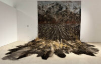 En proyectos como Mascar la Tierra o Tierra de Nadie, busco que el territorio deje de ser solo un espacio geográfico para convertirse en paisaje. Cada fragmento de tierra, cada ceniza, cada rama es un recordatorio de nuestra relación con lo que habitamos. El paisaje es una extensión de nuestra identidad y memoria colectiva: nos permite reconocernos como parte de él, valorarlo y respetarlo. La pintura me da la posibilidad de explorar esa conexión, de mostrar los límites y fronteras de manera poética, y de invitar al espectador a reconsiderar su vínculo con la tierra y el entorno que lo rodea.