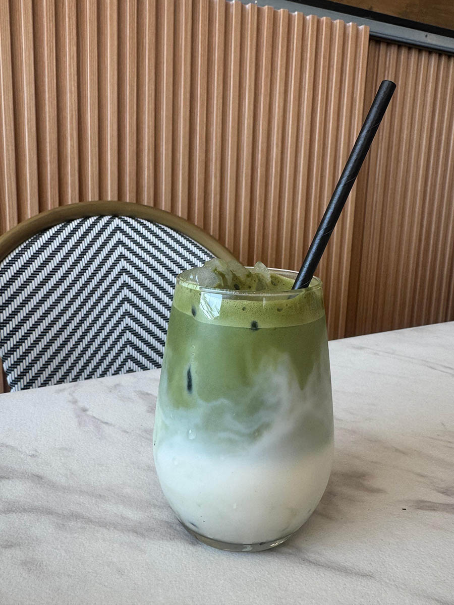 La propuesta también integra una línea saludable y natural: opciones sin azúcar, recetas equilibradas y bebidas funcionales. Inspirado en viajes recientes, Sebastián incorporó preparaciones como el golden milk —mezcla de cúrcuma, pimienta, canela y anís— y matcha en distintas versiones, tanto calientes como heladas. Bebidas reconfortantes, antiinflamatorias, pensadas para después del almuerzo o como pausa consciente a mitad de jornada.